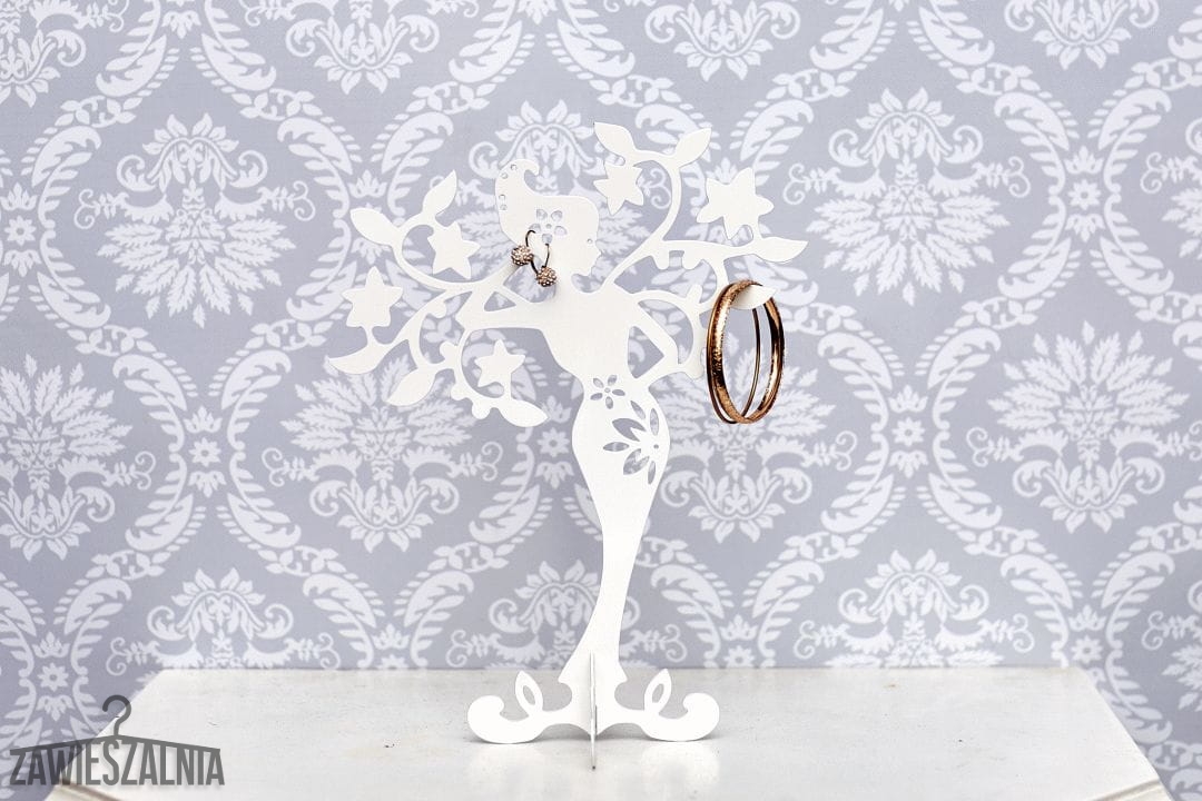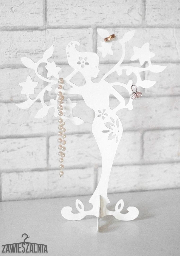 Stojak na biżuterię w postaci nimfy to bardzo atrakcyjna wizualnie dekoracja. Postać nimfy z gałązkami doskonale wkomponuje się w aranżację każdego wnętrza, bez względu na jego styl. Stojak ma bardzo ciekawą formę, która przyciąga wzrok. Równocześnie jest to bardzo funkcjonalny gadżet. Może służyć do zawieszania łańcuszków, wisiorków, kolczyków czy pierścionków. To połączenie dobrego designu i praktycznego wykorzystania z pewnością zachwyci każdą kobietę oraz osoby ceniące ładne przedmioty codziennego użytku.